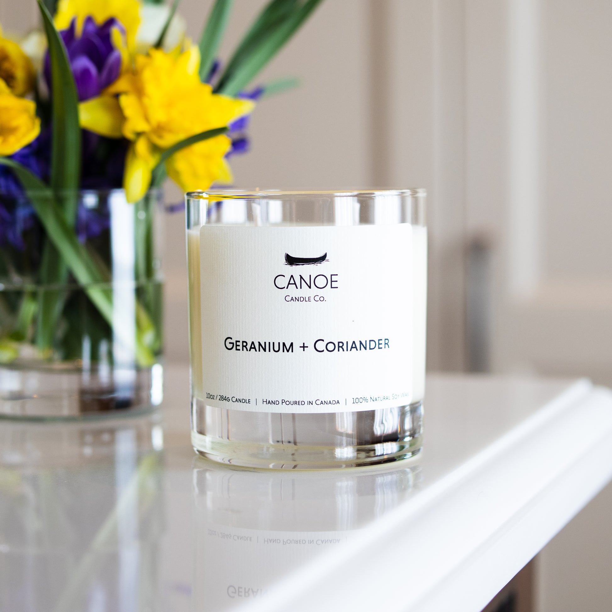 CANOE's 10oz candles are hand poured with North American grown and processed soybean wax paired with phthalate-free and paraben-free fragrances that are approved by the International Fragrance Association.